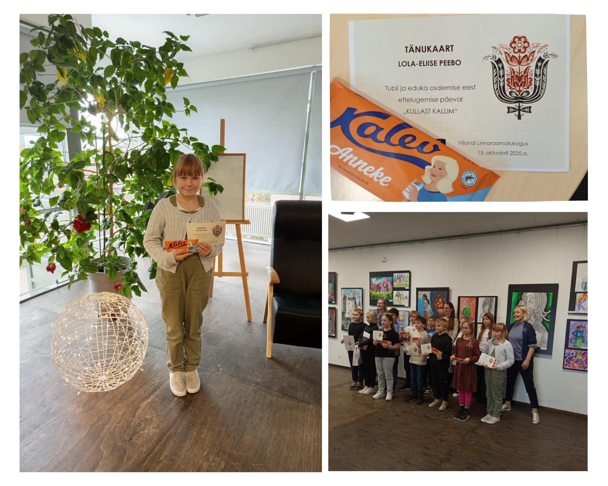 15. oktoobril osales 4. klassi õpilane Lola-Eliise Peebo Viljandi Linnaraamatukogu galeriis maakondlikul ettelugemispäeval "Kullast kallim".